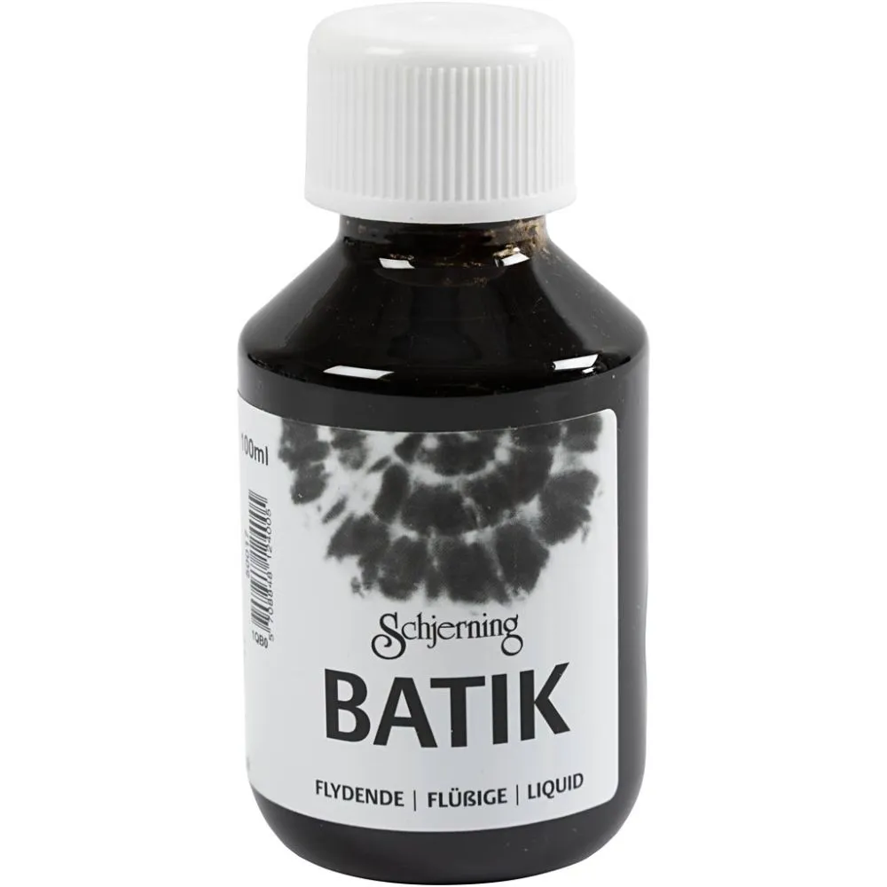 Vattenbaserad batikfärg till infärgning av bomullstextiler i färgbad m.m. 100 ml. färg räcker till 700 g vitt bomullstyg (den svarta färgen räcker till 350 g). Färgen tillsätts i vatten, kökssalt och fixeringssalt och tål därefter maskindisk.