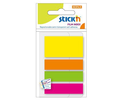 Indexflikar i PP som lätt fästes på papper eller annat som du vill hitta snabbt. 100 flikar varav 25st 45x25mm och 75st 45x12mm i 4 halvtransparenta neonfärger.