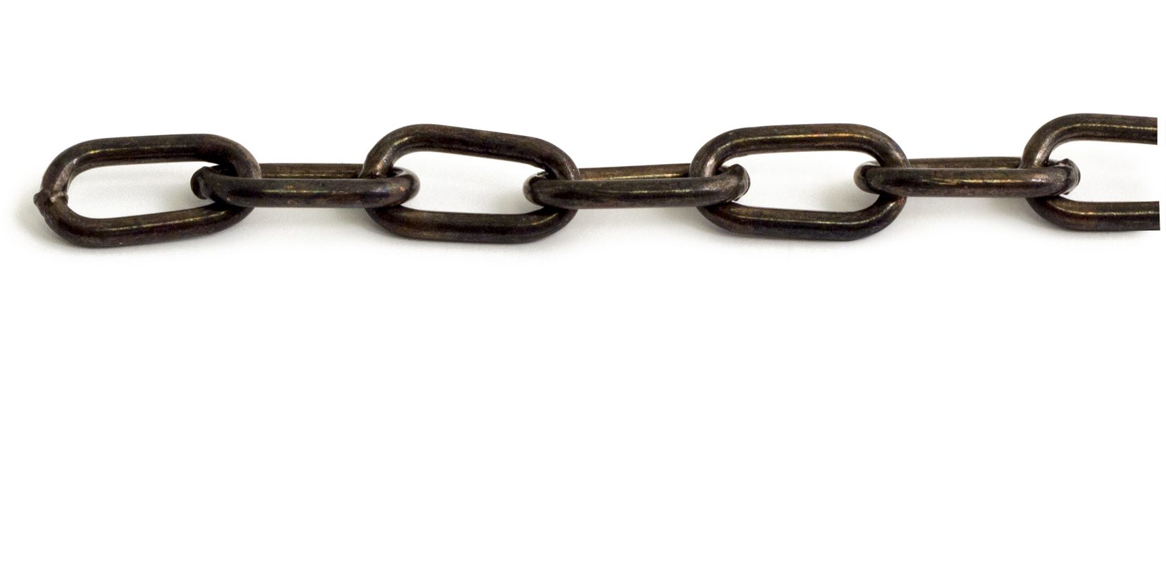 Ovallänkad dekorkätting av stål. Maxbelastning 12 kg. Detta är den belastning vi säkert vet att produkten tål. Brottgränsen, när materialet brister, är för vår kätting 5 gånger angiven maxbelastning. Värdena är beräknade och garanteras inte.