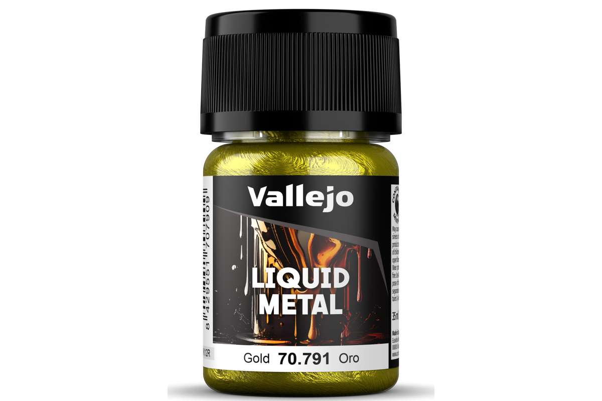 Vallejo Liquid Gold-färger ger en finish av exceptionell briljans och hållbarhet med fullständig ljusäkthet. Med riktiga metallpigment i alkoholbas är färgerna betydligt mer lysande och hållbara än jämförbara vattenbaserade färger. vattenbaserade färger. De metalliska färgerna kan blandas med varandra och kan även skiktas för att uppnå färgeffekter. Vi rekommenderar vit, grå eller svart som primer.