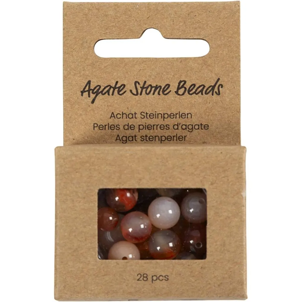 Tillverka smycken av vår naturliga agat, en otroligt vacker halvädelsten som består av flera tusen lager. Pärlan har otaliga unika ränder samt en unik symbolik. Den är därför en mycket populär smyckepärla och lämpar sig utmärkt om du vill skapa unika halsband, armband och örhängen. Det är enkelt att trä pärlorna på smyckestråd eller 0,6 mm-polyestersnöre – och om du vill kan du även knyta eleganta knutar mellan pärlorna.
