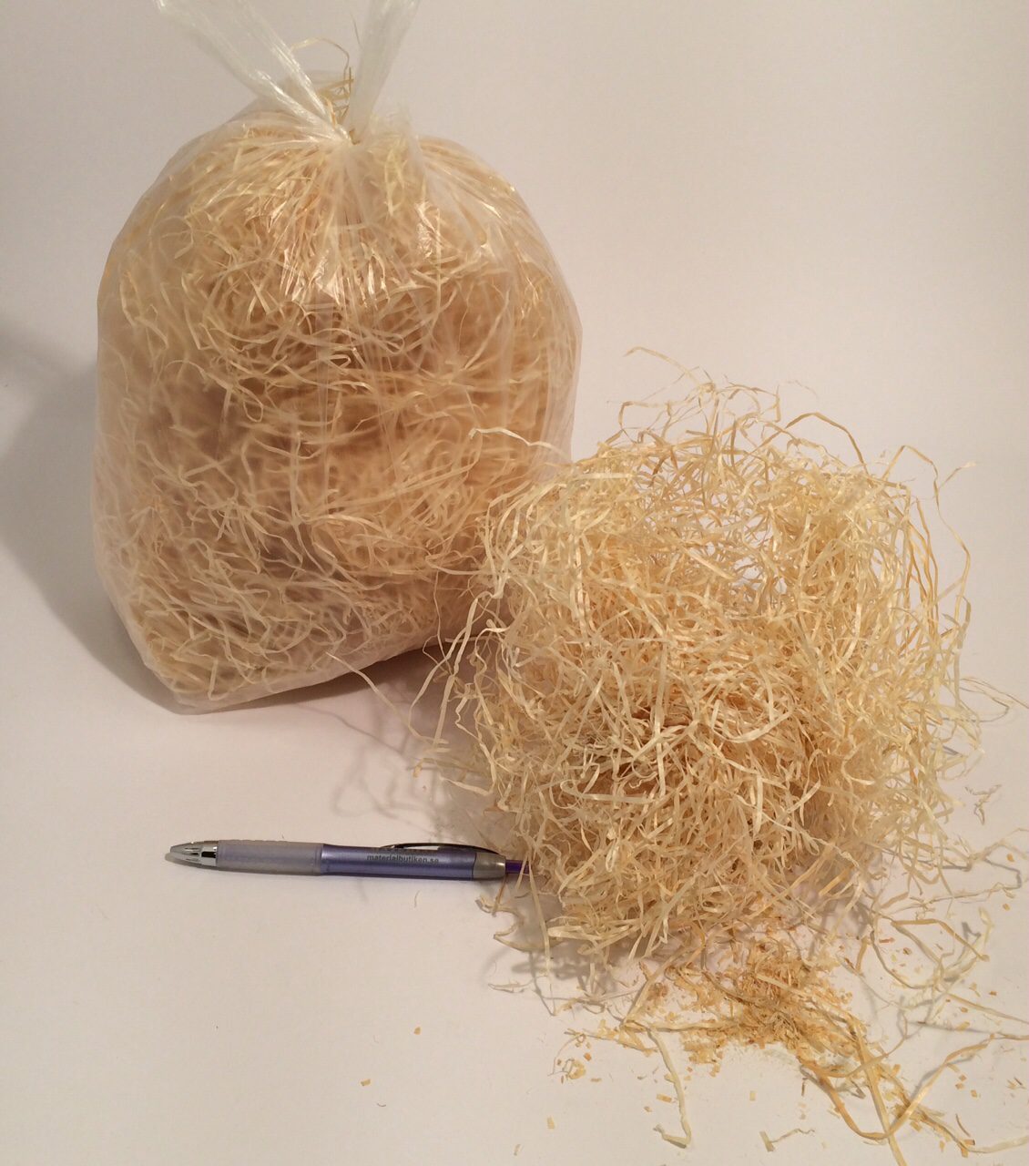 Träull. Passar perfekt som dekoration i grupper och skylfönster. Ett material som även kan användas som skydd till lite ömtåligare produkter vid inpackning.